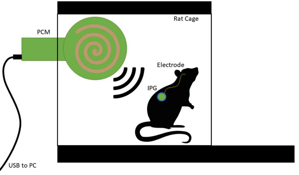 Teliatry has adapted its VNS IPG to preclinical animal research. Due to the small form factor, it can be used for animal studies including small animal subjects like rodents. Our research IPG can be implanted or worn and provides wireless, digitally controlled current pulses to any electrodes. A transmitter is typically positioned near the experimental apparatus/cage to provide power to the IPG and relay communications to a PC.